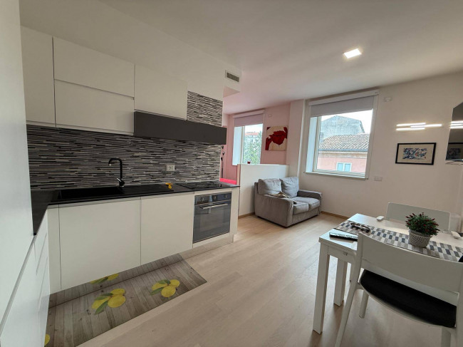 Via Mazzini, centralissima e ben servita, Appartamento arredato in immobile di pregio completamente ristrutturato, di metri quadrati 40 circa, posto al piano quarto servito da ascensore e composto da cucina-soggiorno, camera matrimoniale, bagno e cantina. Impianto di riscaldamento a pavimento con climatizzatori. Impianto fotovoltaico condominiale. Nel prezzo sono incluse tutte le spese. Possibilità di acquisto.